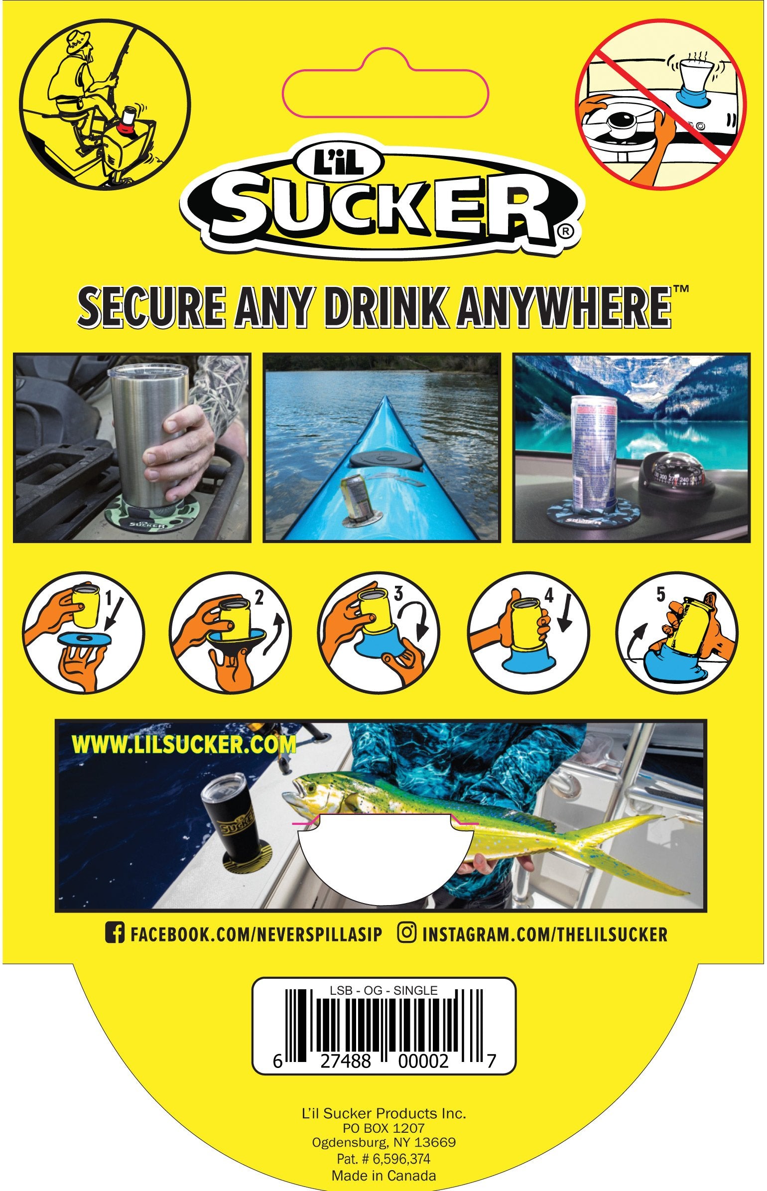 The L'il Sucker® was designed to keep your drink right-side-up under even the harshest conditions. Suction your drink to just about anything and never worry about spilling again. We've engineered the center hole to create maximum tension in order to provide that added sense of security. And it creates some serious suction to hold your drink in place, enough to lift our cooler! Every L'il Sucker® is made using high quality neoprene with sublimation printing to ensure a product that will last for years.